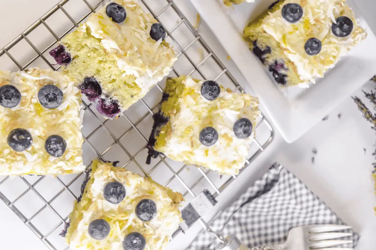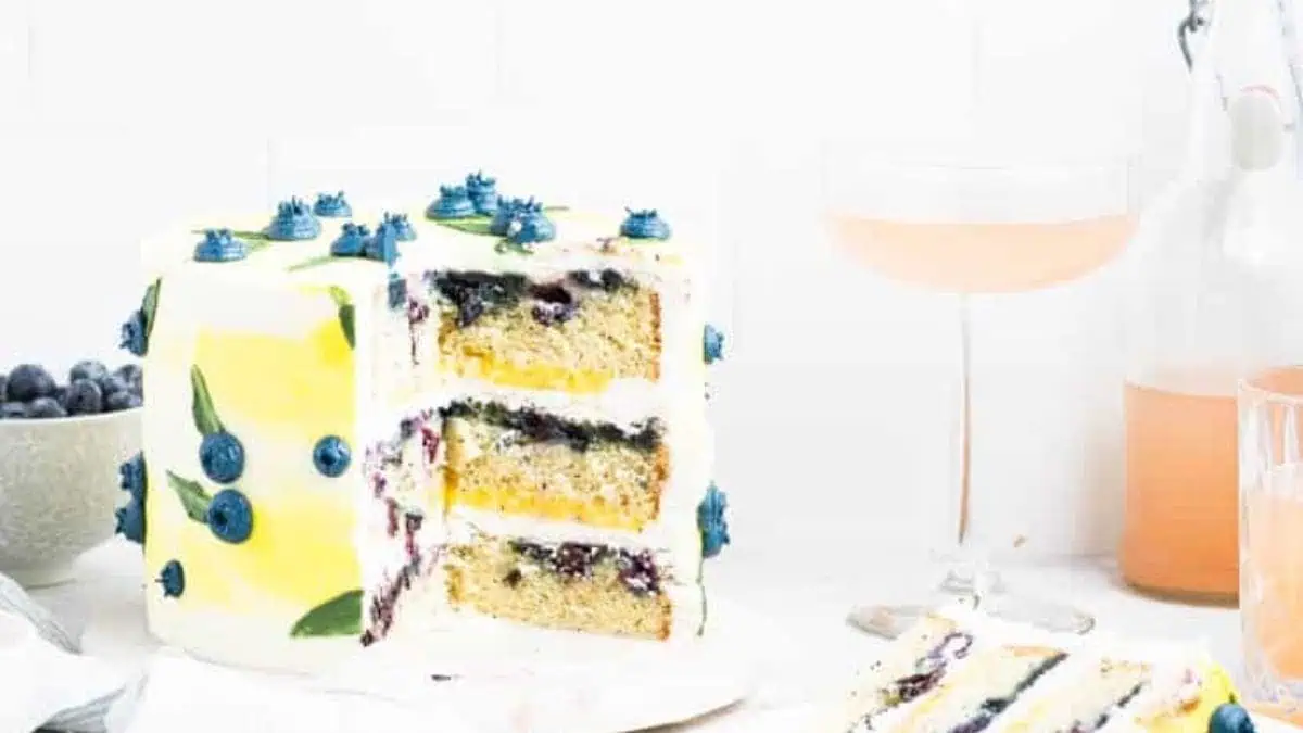 This blueberry lemon cake recipe is a breeze to whip up. The combination of juicy blueberries and zesty lemon buttercream nestled between layers of sponge cake creates a soft and moist dessert. The tartness of the blueberries, tangy lemons, subtle coconut sprinkles, and sweet buttery frosting make for a natural and refreshing cake.