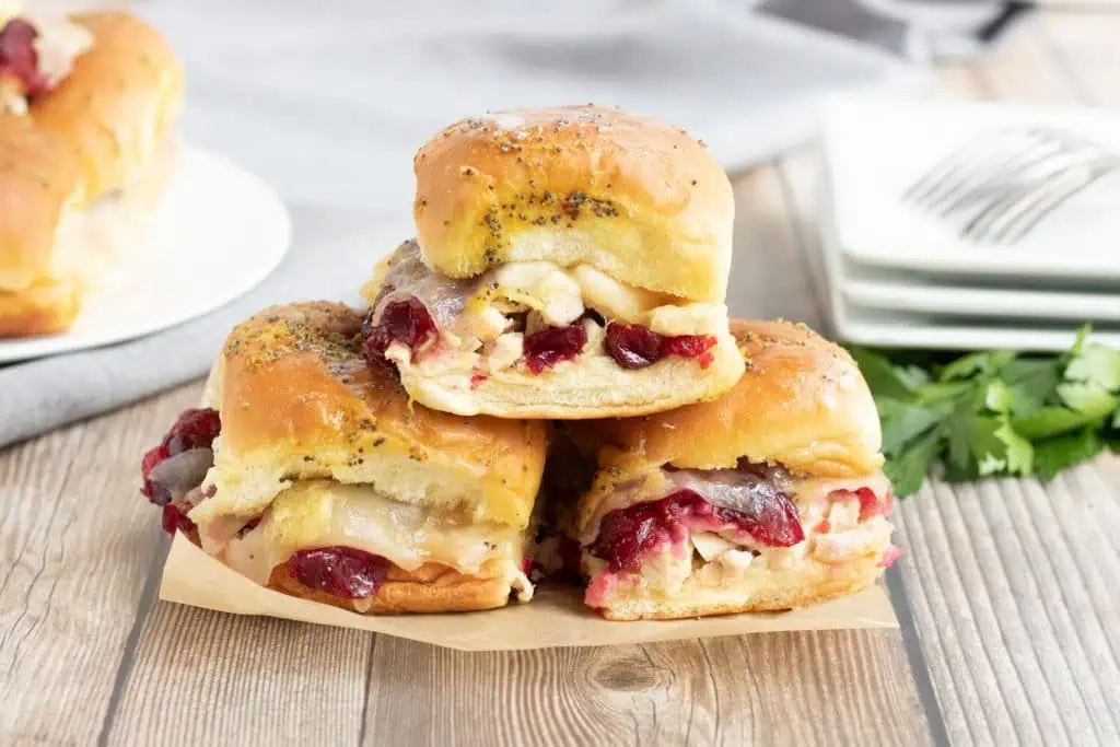 A nod to Thanksgiving flavors, Turkey Cranberry Sliders feature sliced turkey breast, cranberry sauce, and melted provolone. Add a layer of stuffing or arugula for extra texture. The blend of savory and tart flavors feels festive without being heavy, making these sliders perfect for fall parties or post-holiday leftovers.