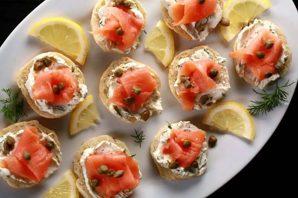 Slice bagels into bite-sized pieces and toast them lightly. Spread a thin layer of cream cheese, opting for a variety like chive or herbed to complement the fish. Top with thin, delicate slices of smoked salmon, ensuring each piece is balanced. Garnish with capers and finely chopped red onion for a burst of flavor. Finish with a sprinkle of dill, enhancing the salmon's natural richness. These bites offer a satisfying blend of textures and flavors, perfect for an elegant yet swift meal.