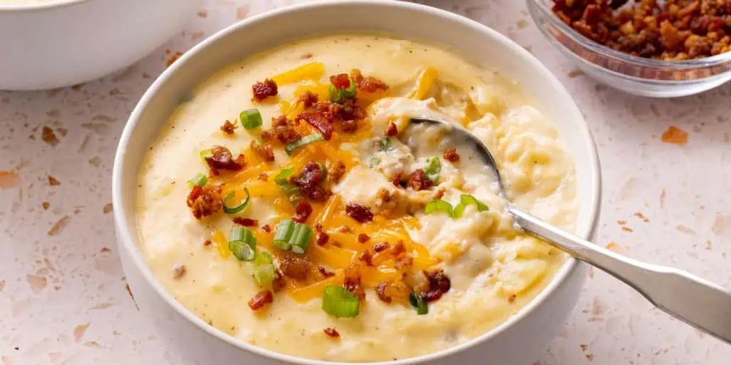 Rich, creamy, and topped with bacon, cheese, and green onions, this soup tastes like everything you love about a baked potato just in spoonable form. It’s indulgent without being heavy, warming from the first bite to the last. One bowl feels like a hug on a cold day.