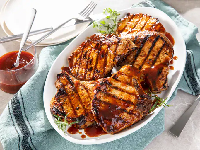 Nothing compares to the smoky, charred flavor of pork chops cooked on the grill. Slathered with your favorite barbecue sauce, these chops bring backyard cookout vibes to any meal. Pair them with corn on the cob and coleslaw, and youโve got a dish that rivals and surpasses most barbecue takeout.