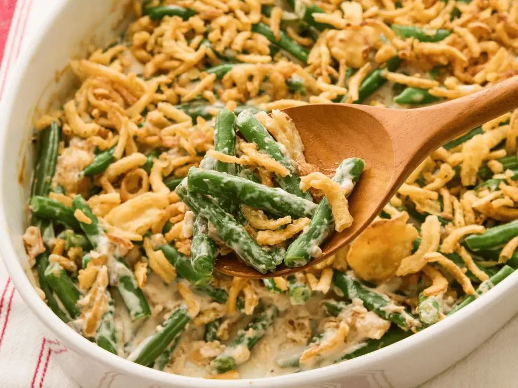 This iconic dish never fails to appear during the holidays. With tender green beans, creamy mushroom sauce, and a crunchy fried onion topping, it delivers comfort in every bite. Its simplicity makes it perfect for large gatherings, and the 9×13 format ensures everyone gets a serving. Even modern cooks admit no holiday meal feels complete without its nostalgic flavor and irresistible texture.