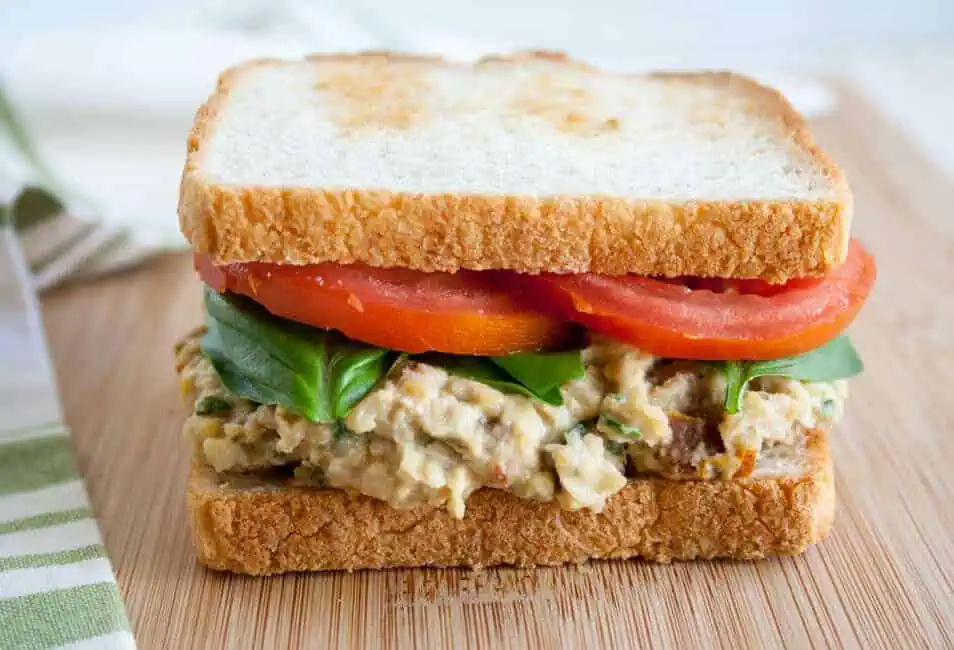 7. Sun-Dried Tomato and Basil Chickpea Salad Sandwich