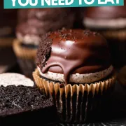 These delicious Oreo cupcakes are incredibly moist and filled with Oreo cookie crumbs. They’re finished with a delightful cookies and cream frosting, and to top it off, the tops are dipped in chocolate magic shell and coated with even more cookies for that bakery-style look.