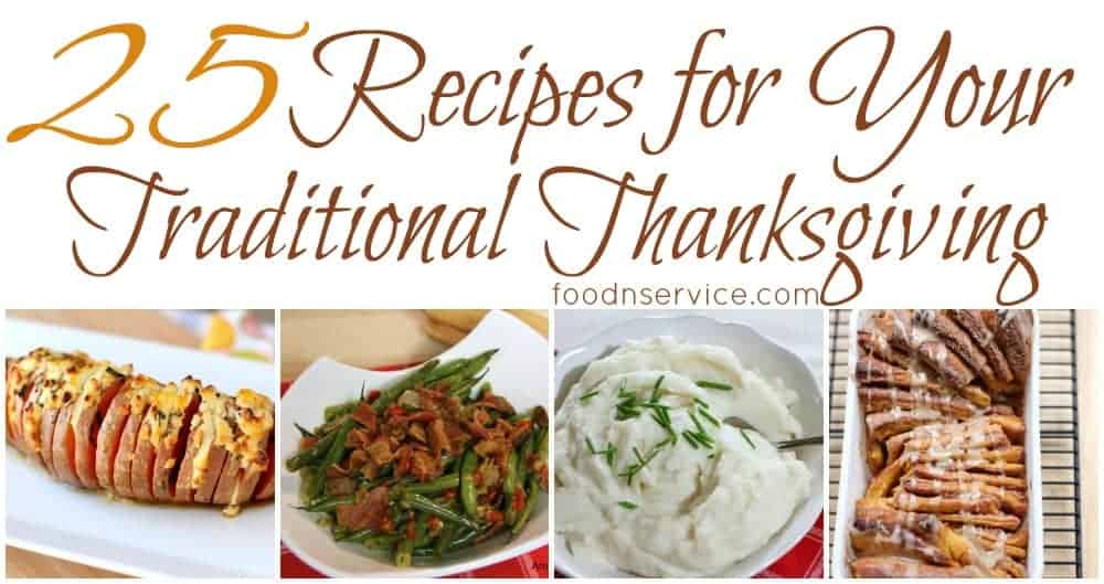 Traditional Thanksgiving dishes can vary with the region of the country and sometimes depend on what foods are locally available. Traditional meals consist of roast turkey and stuffing, mashed potatoes with gravy, cranberries, sweet potato casserole, green bean casserole, rolls or bread, and pies for dessert. A slice of pumpkin pie is also a favorite dessert.