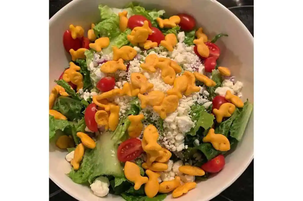 Transform your salad with the playful crunch of Goldfish crackers. These cheesy bites add a delightful texture and a hint of umami, complementing everything from mixed greens to Caesar salads. To optimize their effect, scatter them just before serving to maintain their crispness. The cheesy notes pair beautifully with tangy dressings like balsamic or a sharp vinaigrette, making for a compelling contrast that’s sure to surprise and please.