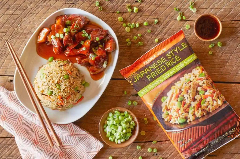 The Korean Japchae Fried Rice from Trader Joe's is an umami-packed dish highlighting sweet potato glass noodles and vibrant vegetables. Stir-fry the mixture for an aromatic release of flavors, ensuring the noodles stay slightly chewy. Add a dash of sesame oil and a sprinkle of sesame seeds for added depth. This dish is not only colorful but offers a delightful textural balance that’s both filling and flavorful.