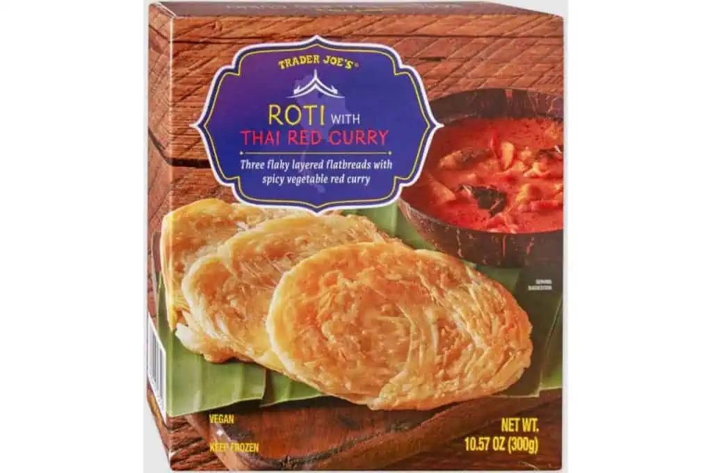 Trader Joe’s Roti with Thai Red Curry offers a spicy yet creamy flavor profile that is both comforting and exotic. Warm the roti until crisped on the edges, providing a delightful contrast to the silky curry sauce. Ensure the curry reaches the right consistency to coat each piece of bread. Enhance with a squeeze of lime and a handful of fresh basil or cilantro to invigorate the rich coconut and spice elements.