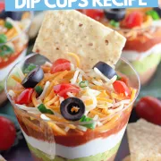 These 7 Layer Dip Cups are adorable Mexican-inspired appetizers you can serve at parties, picnics, BBQs, or potlucks.
