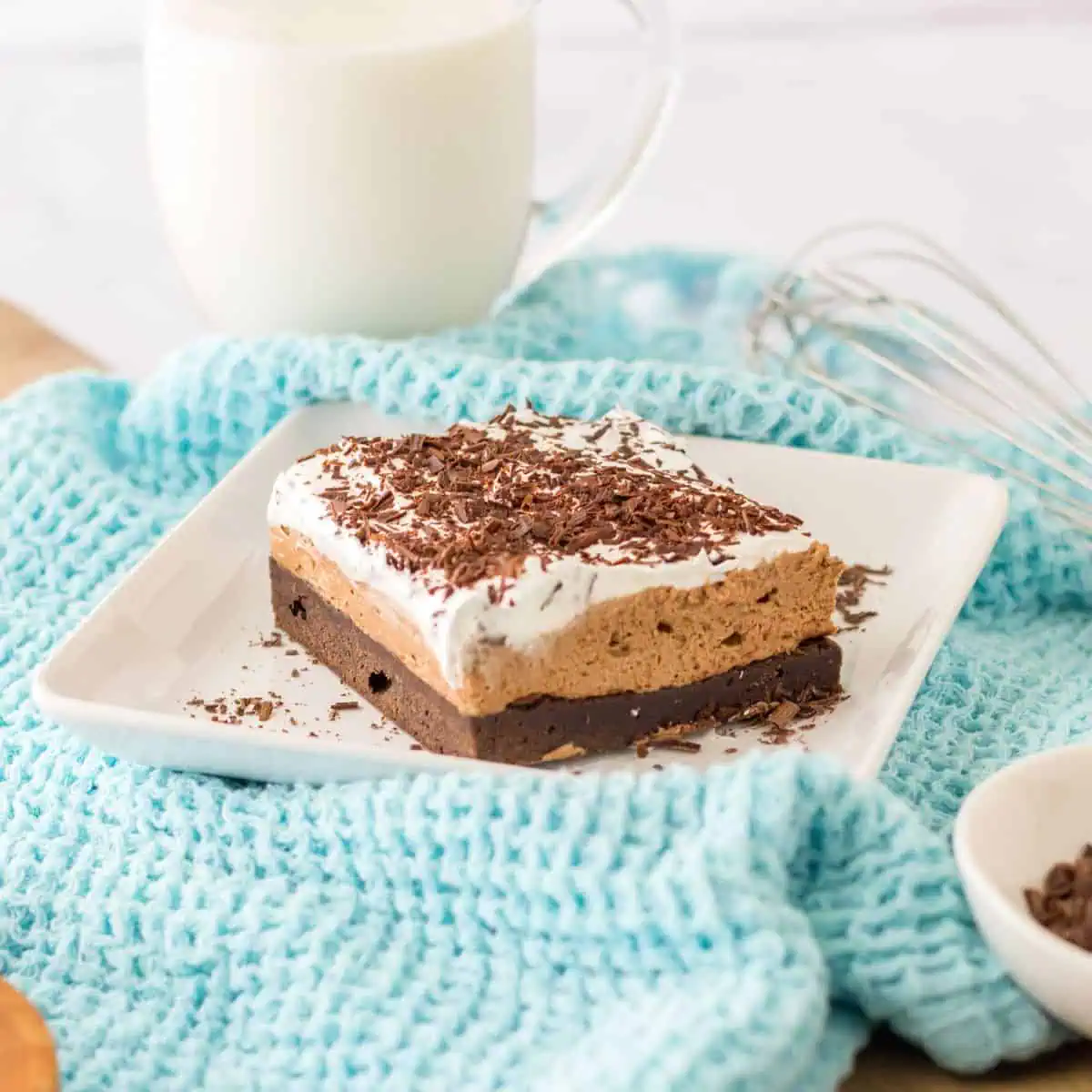 The original French silk pie is known for its smooth-as-silk chocolate filling and fresh whipped cream topping. In today’s recipe, I’ve added a twist by making the base of this dessert with a brownie layer, followed by the French silk layer, and topped with Cool Whip and chocolate shavings!