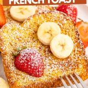 Transfer the air fryer French toast to a plate and serve with your favorite toppings and syrup or honey.