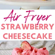 This Air Fryer Strawberry Cheesecake is a wonderfully creamy dessert that will disappear from the pan in no time! Filled with strawberry cream cheese filling and nestled in a buttery graham crust, this cake is beautiful and so delicious.