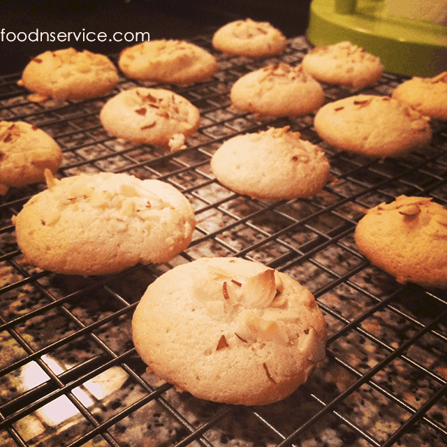 - Place chopped almonds onto of your cookies and bake in the oven for 9-10 minutes.