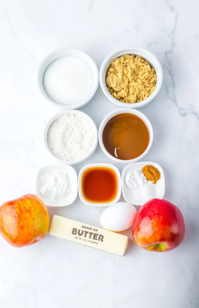 - Apple mixture – Chopped apple, brown sugar, butter, cinnamon, water, and cornstarch.