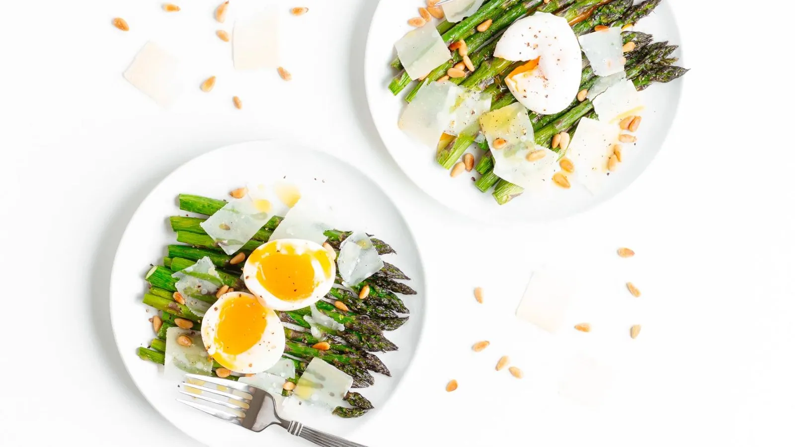 Roasted asparagus pairs up with soft-boiled eggs, parmesan, and pine nuts in this warm salad. Itโs easy to prep ahead and assemble just before serving. You can enjoy it as a light meal or serve it alongside roasted meats.