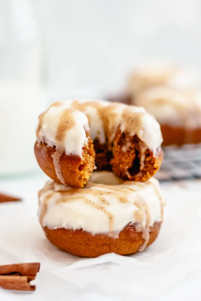 These Pumpkin Spice donuts can be stored in an airtight container for up to two days. Or you can put them in the fridge to prevent them from drying out for up to one week.