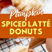 - Bake for 10-12 minutes or until the edges and tops are lightly browned. Cool donuts in the pan for 5 minutes then transfer to a cooling rack. Repeat with the remaining batter. For the pumpkin spice latte glaze, mix ¾ cup powdered sugar with 2 tablespoons of milk. Dip the donuts in the glaze and set aside. In another bowl dissolve the coffee powder in 1 tablespoons of hot water. Add the remaining powdered sugar and the pumpkin pie spice. Mix well and drizzle the coffee glaze over the previously glazed donuts. Place back onto the cooling rack or on a plate to let the glaze set.