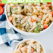 • Ranch dressing is great to add to the creamy pasta salad dressing. You could also use store-bought Ranch dressing to replace the homemade creamy mayo dressing.