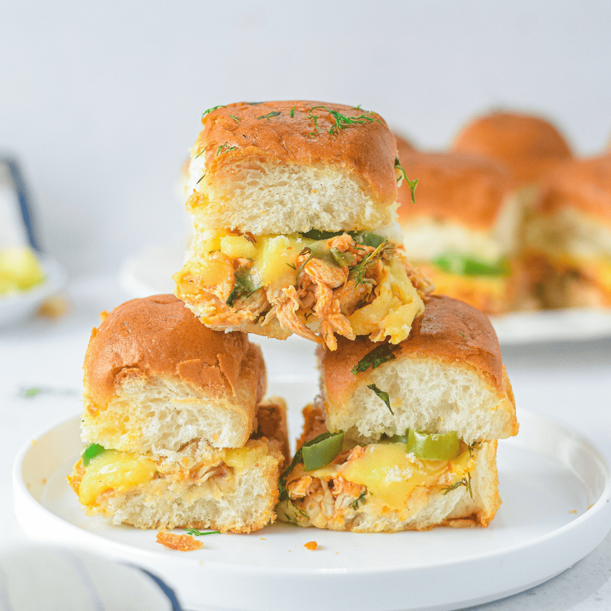 The entire family enjoys these delicious buffalo chicken sliders alongside coleslaw, mashed potatoes, and sometimes cheesy potato wedges or skins. Some days, I slightly change the slider fillings; however, buffalo chicken filling is an all-time family favorite.