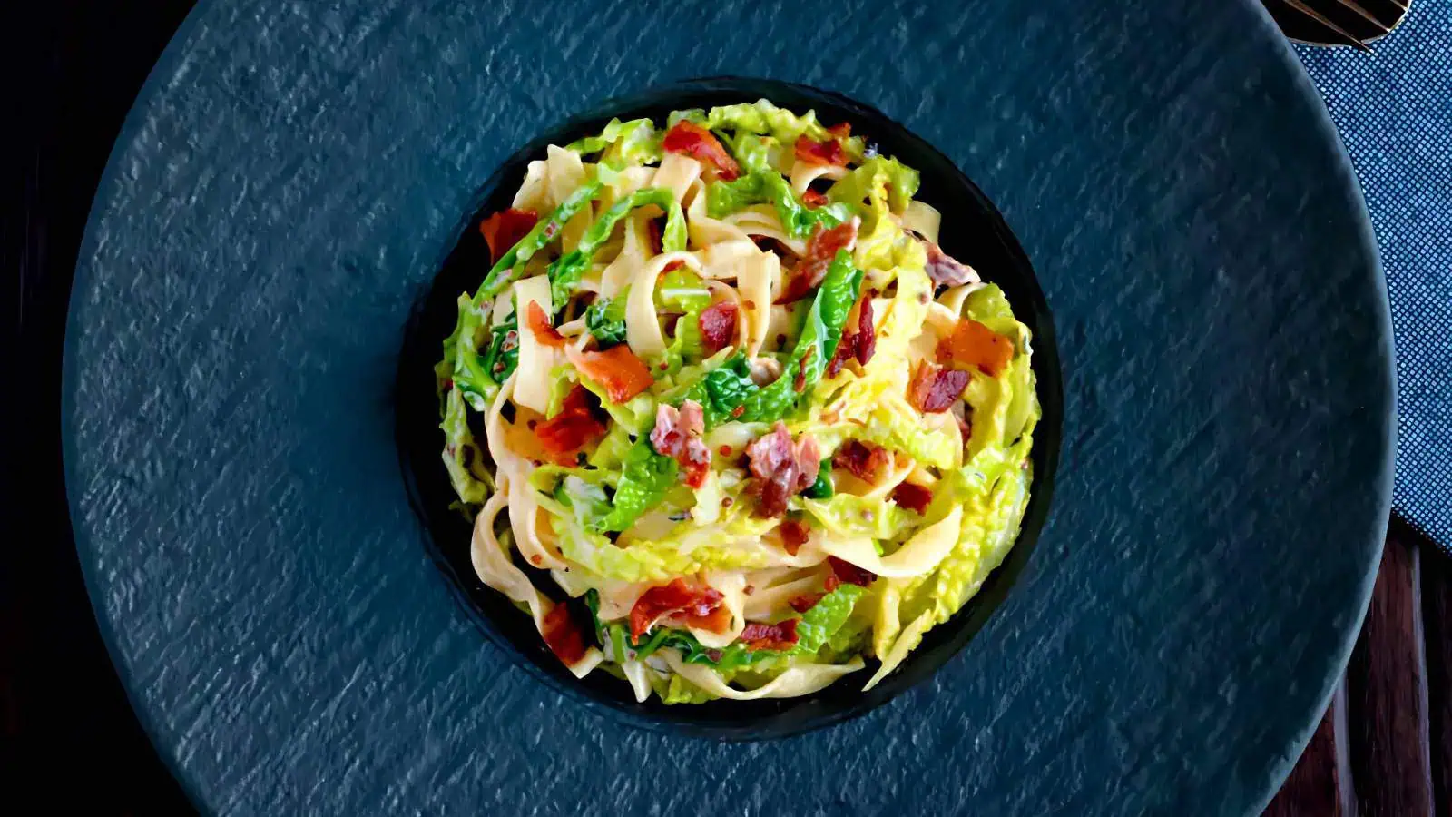 Cabbage Pasta with Bacon and Mustard