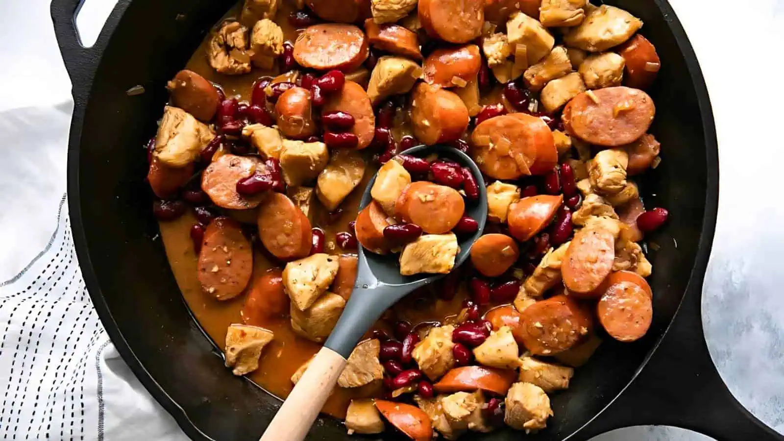 Packed with Cajun flavor, this sausage and chicken skillet is an easy, one-pan meal. Using a cast iron skillet ensures even cooking and rich flavors, making it a staple in any quick cast iron dinner recipes collection.
