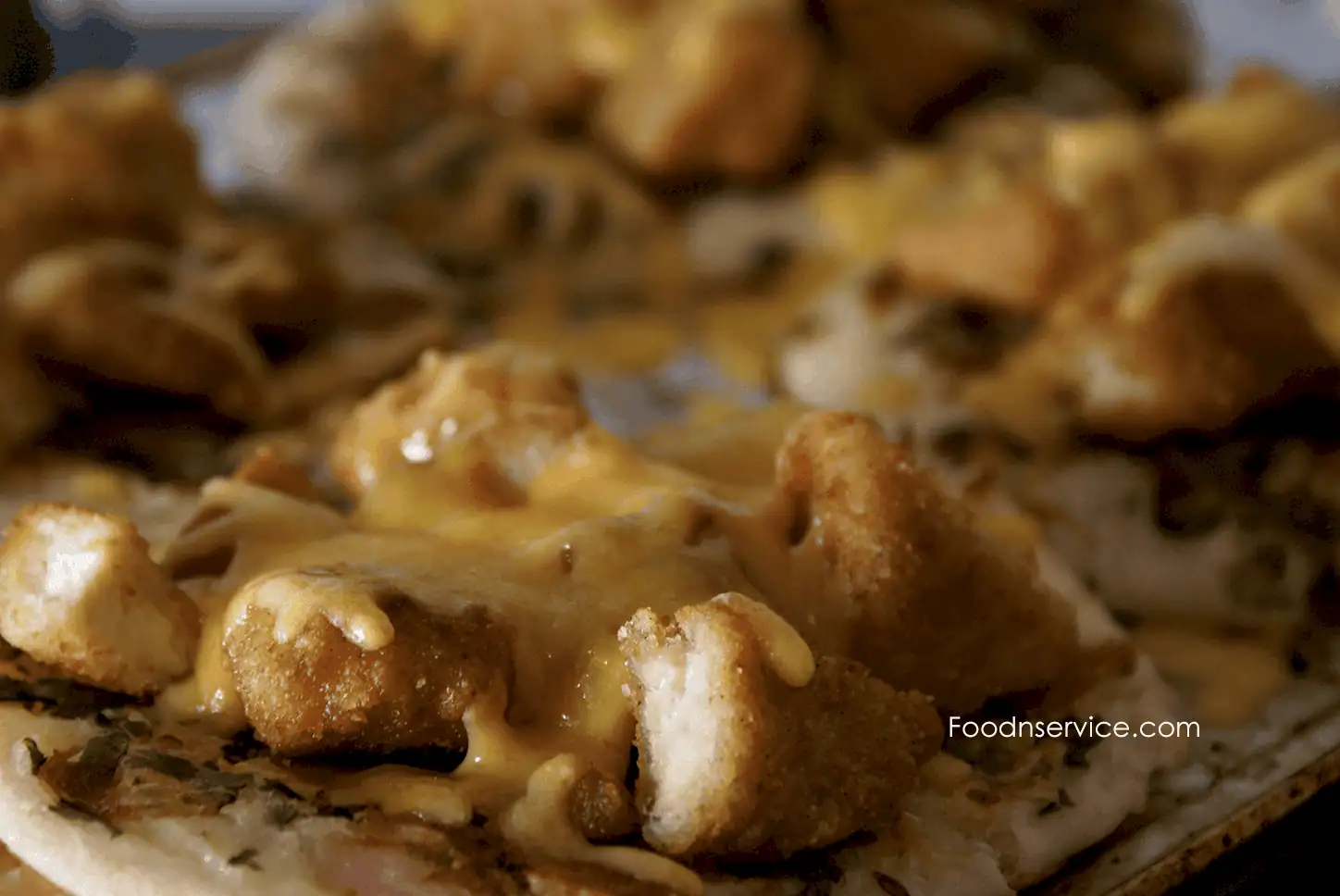 - Diced chicken fingers scatter upon Uttapam.