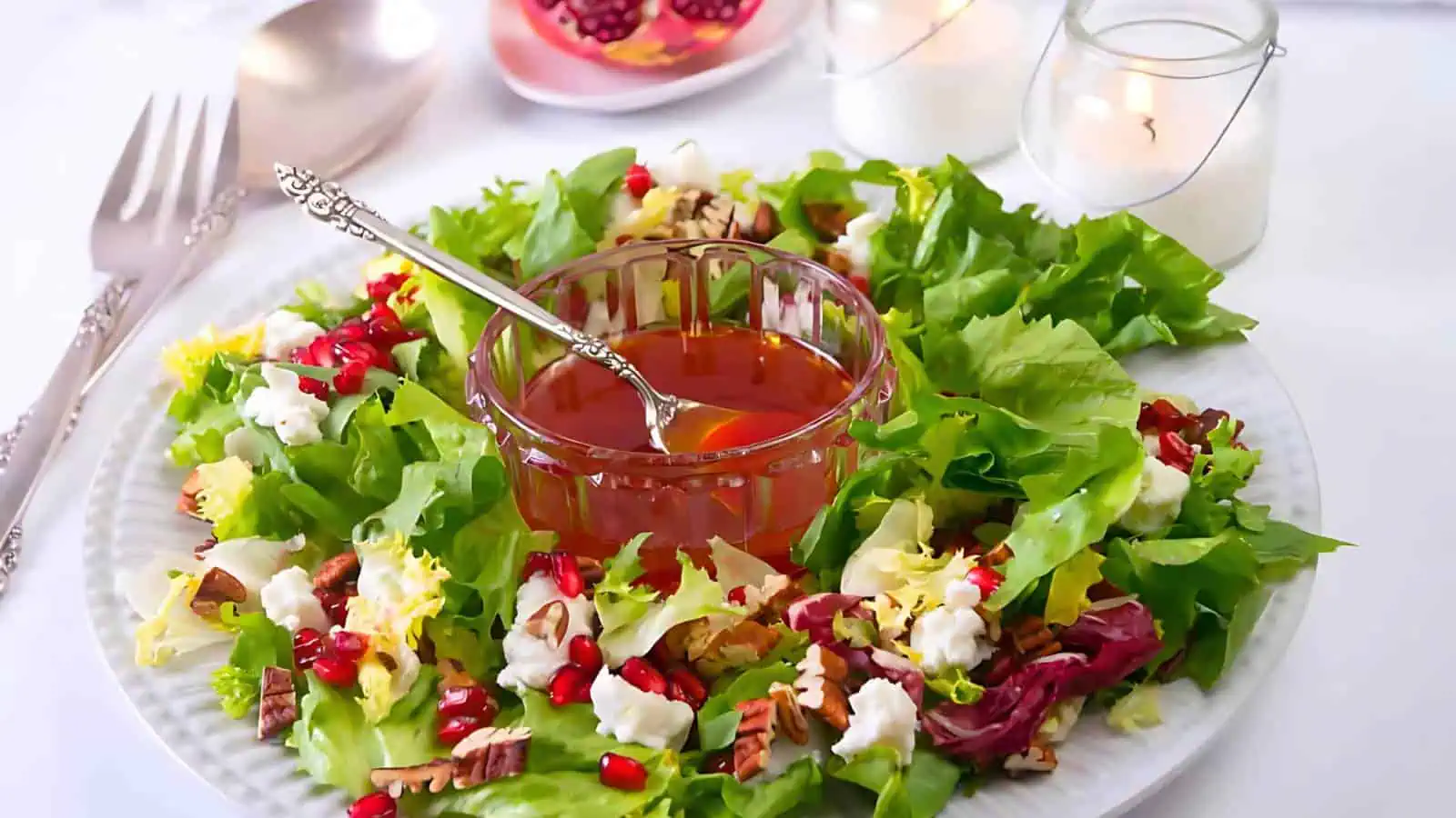 This Christmas Wreath Salad brings color and freshness to the holiday table, perfect for Christmas Eve Dinner ideas. The red, green, and white ingredients make a festive presentation, while a pomegranate vinaigrette adds just the right seasonal flavor. Quick and easy to prepare, itโs a beautiful addition to any meal.