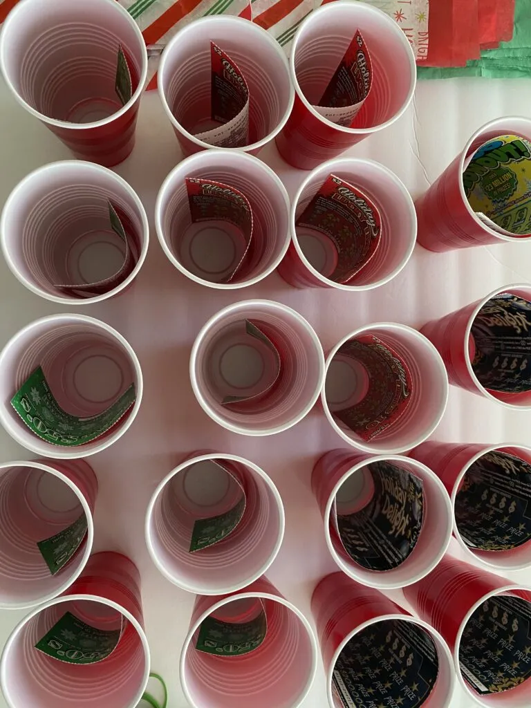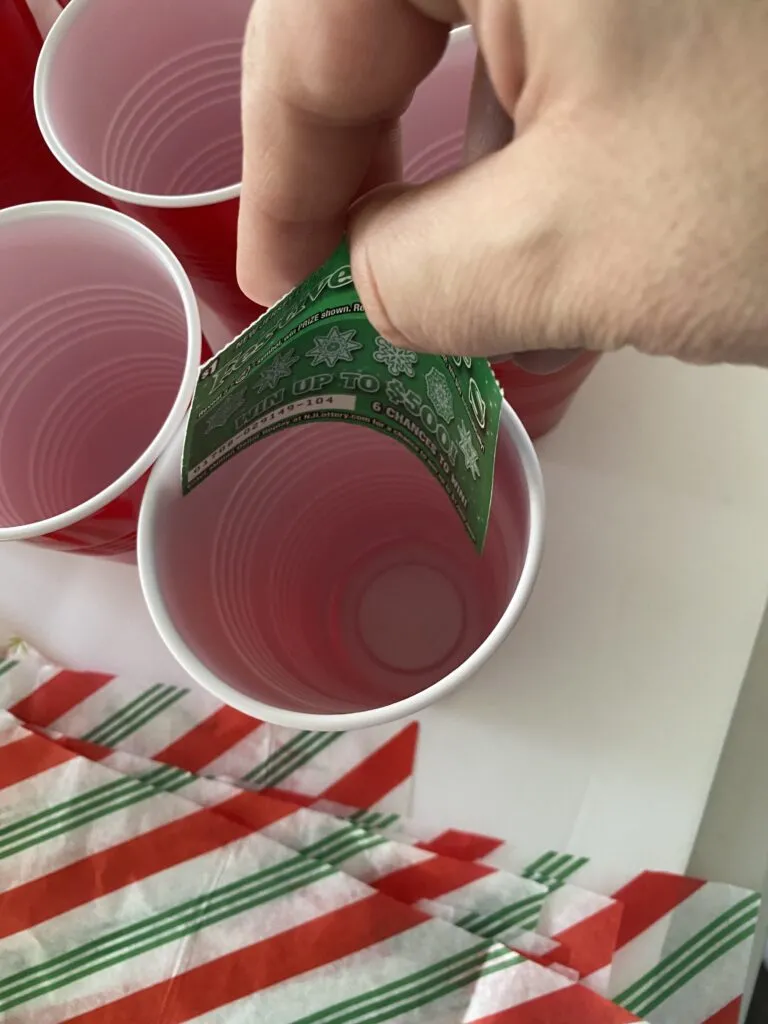 Okay, but back to the main point of my post: How to make a Christmas Punch cup game with using these festive NJ Holiday Lottery scratch off tickets. Iโ€™ve been creating some super fun and creative DIY Lottery Christmas gifts for a while now! Here are some ideas you might have missed!