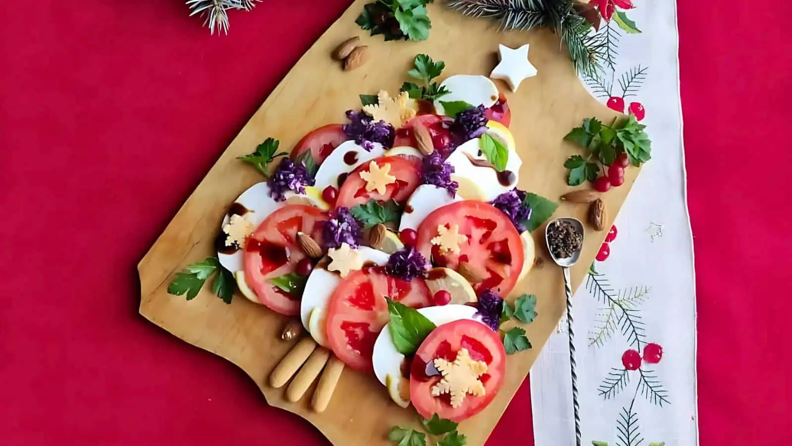 This Caprese salad gets a holiday makeover by arranging fresh mozzarella, tomatoes, and basil in a tree shape. Itโs a healthy, festive addition to your holiday table. A refreshing choice for Christmas tree recipes, itโs a crowd-pleaser at any gathering.