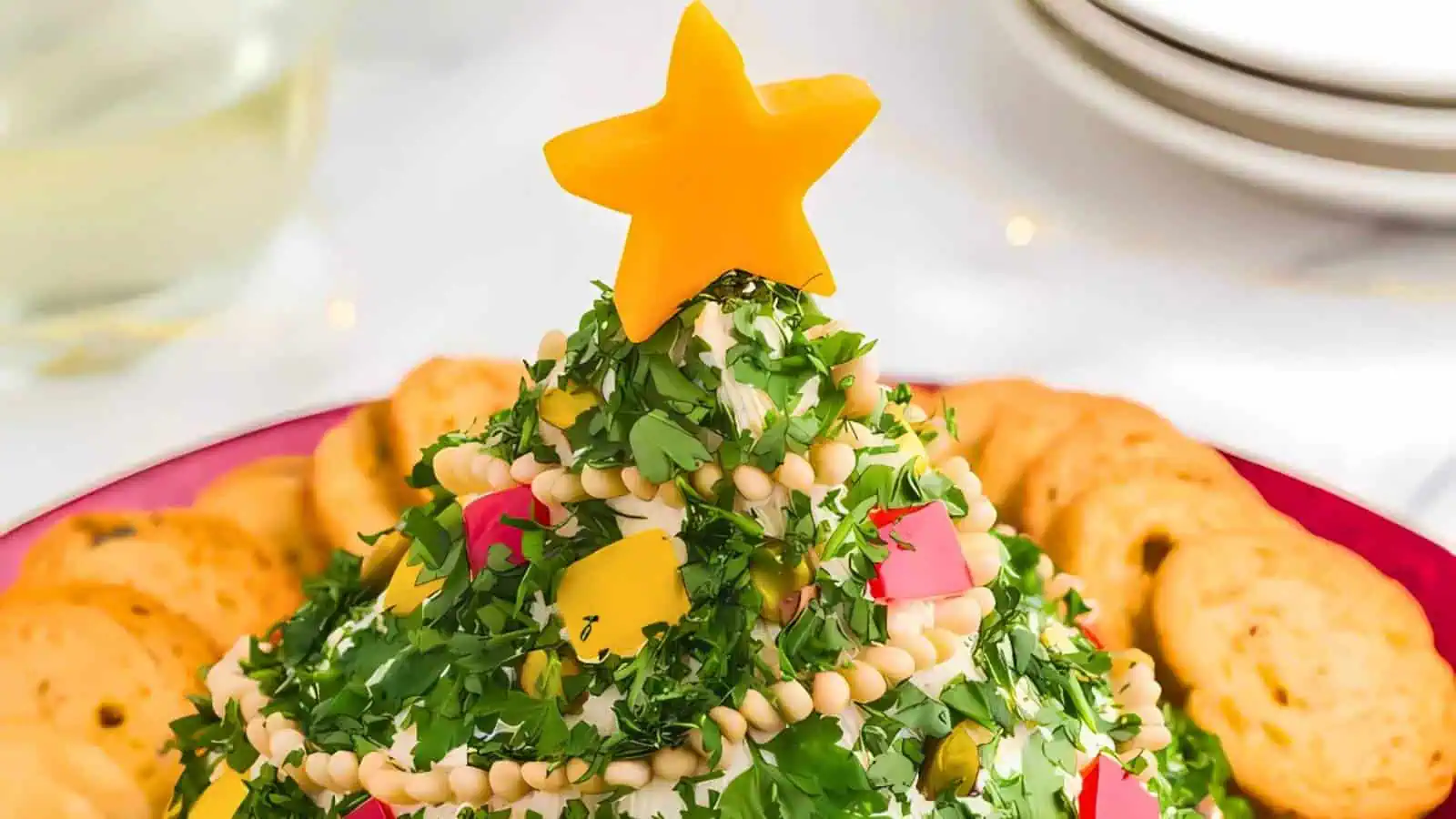 This savory cheese ball, shaped like a tree and decorated with fresh herbs and pine nuts, is a holiday hit. Itโs flavorful, festive, and easy to pair with crackers. A top pick for Christmas tree recipes, itโs a guaranteed conversation starter at parties.
