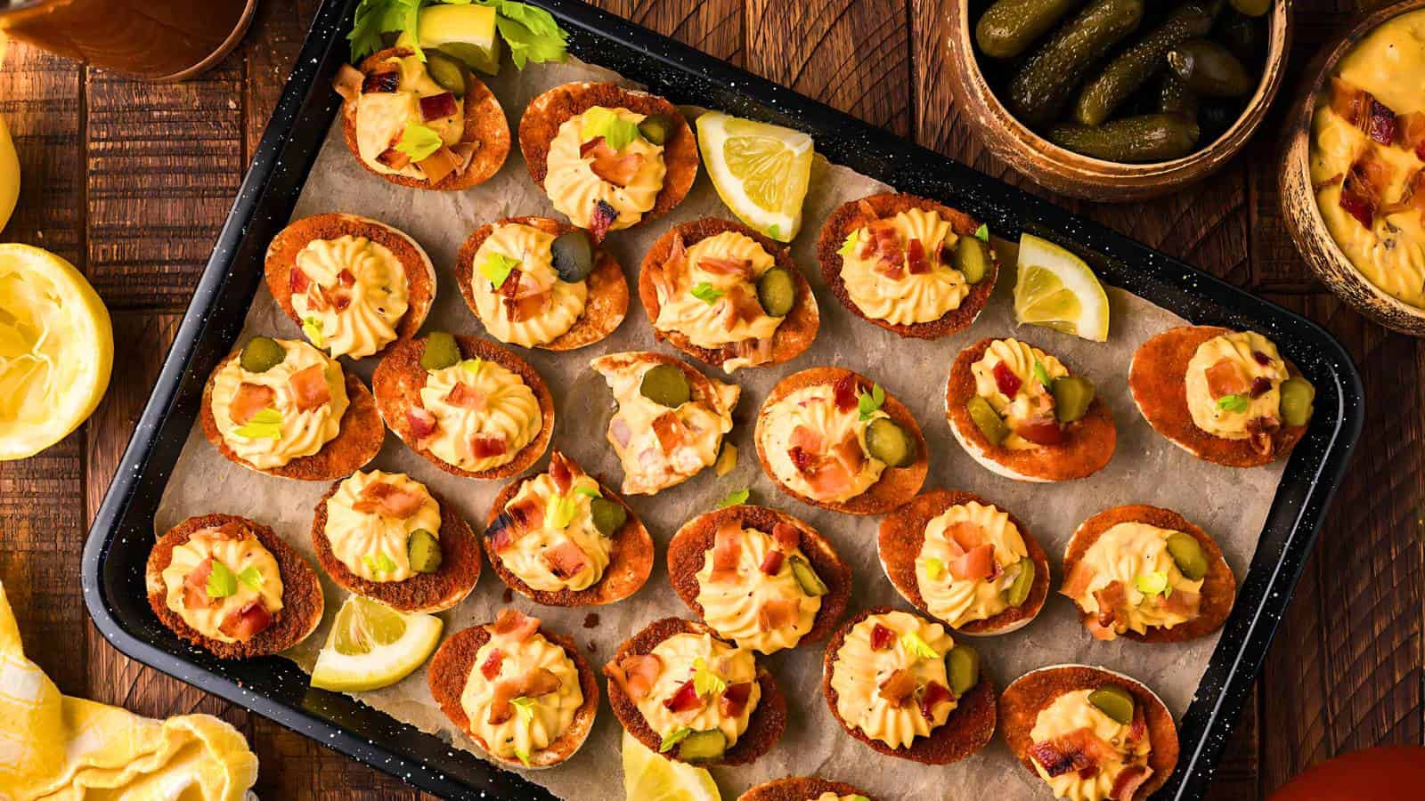 Delicious Bloody Mary Deviled Eggs are a creative option for cold appetizers to make ahead of time. Infused with unique flavors like pickle juice and paprika, these deviled eggs offer a fun twist on a classic. Prepare them in advance for an impressive party snack.