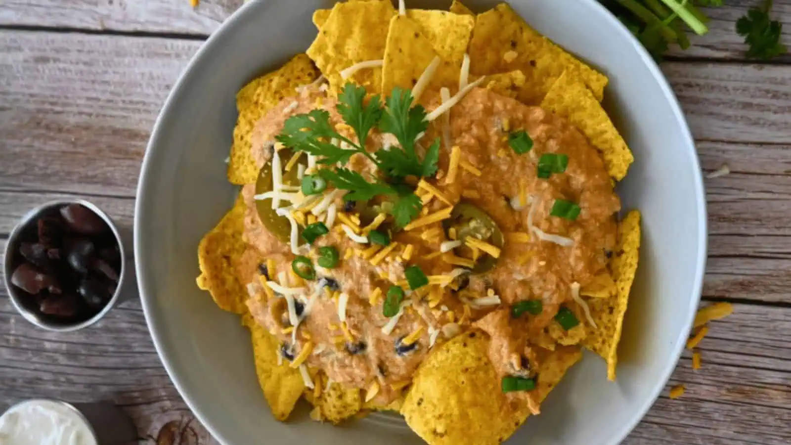 Slow Cooker Cheesy Ground Chicken Nachos. Photo credit: The Lazy Slow Cooker.