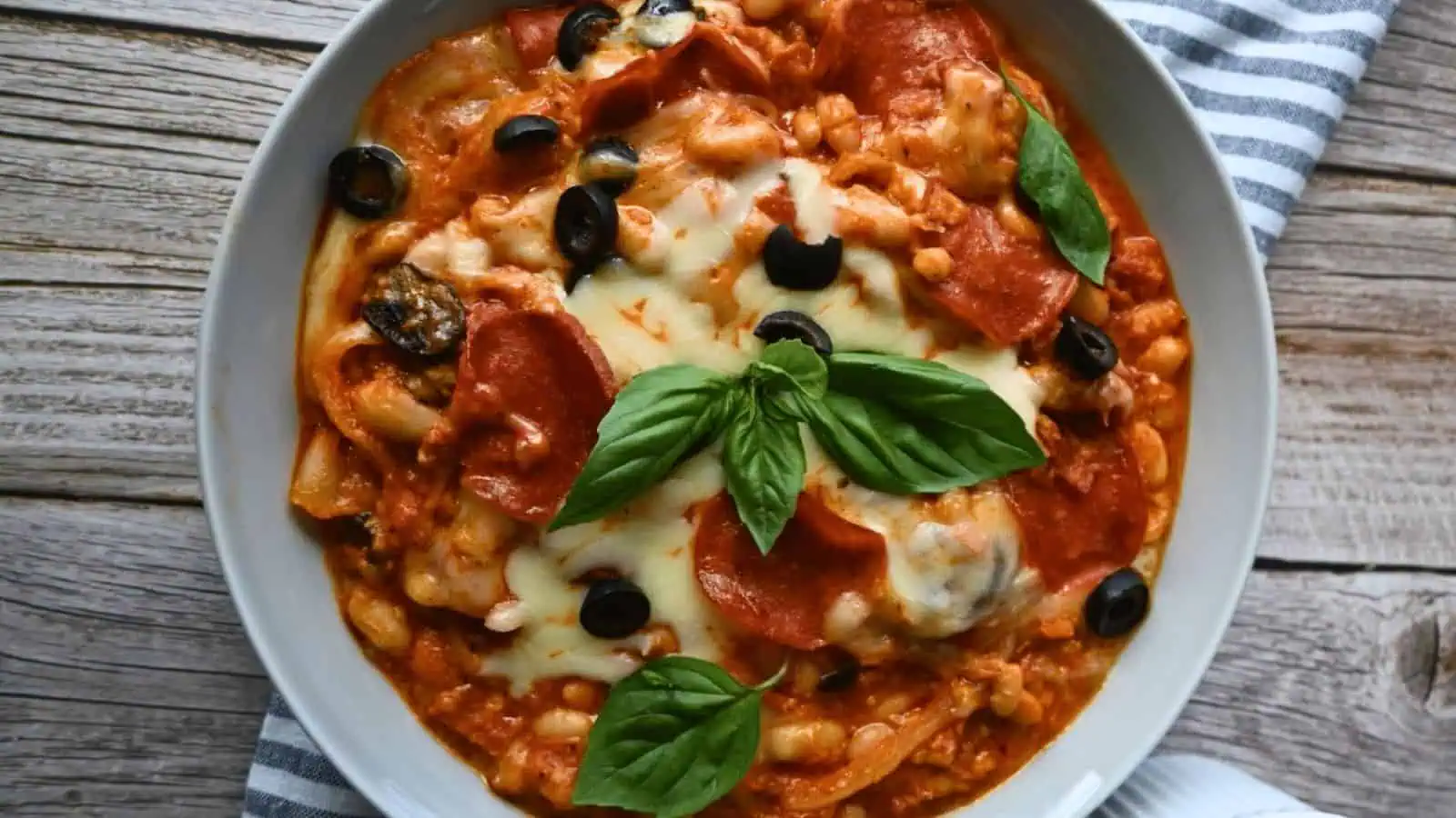 Pizza beans combine cheese, beans, pepperoni, and marinara for a hearty one-pot meal. This recipe is simple enough for weeknights but filling enough for weekends. Even picky eaters tend to like this one. Serve it with garlic bread or on its own.