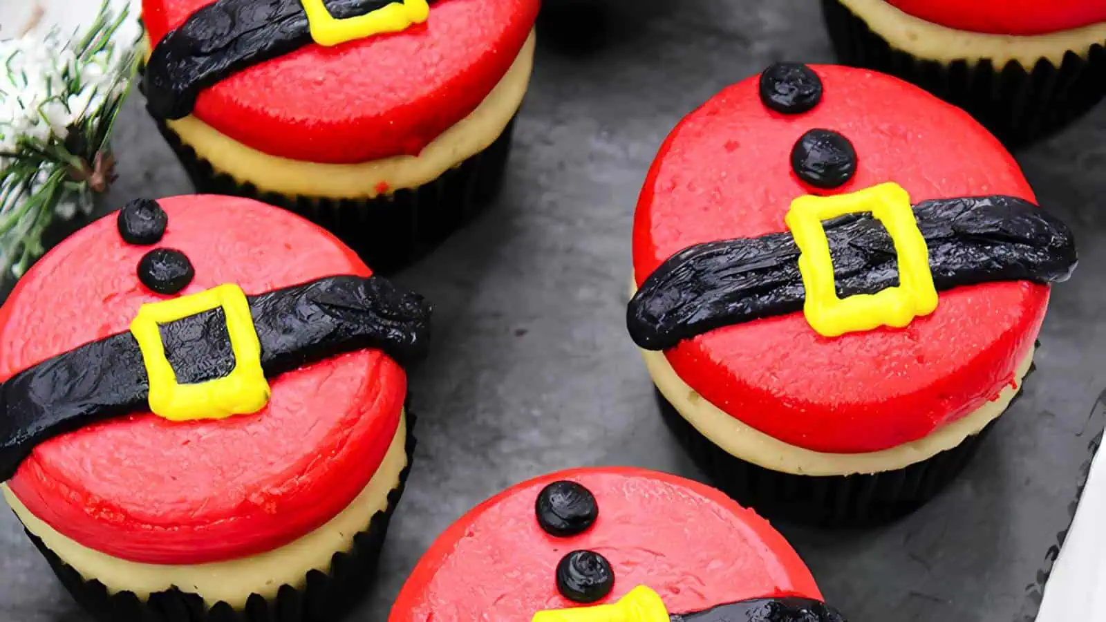 Decorated with Santaโs signature belt, these cupcakes are festive and easy enough for beginner bakers. Cute and easy Christmas treats like these are great for holiday parties and sure to make everyone smile.