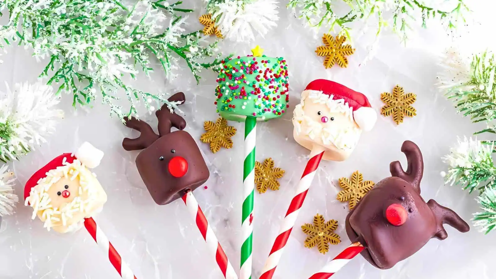 These festive marshmallow pops are dipped in chocolate and decorated as Santa, Rudolph, and Christmas trees! As cute and easy Christmas treats, theyโre great for parties and quick to make with sprinkles and pretzels. Kids will enjoy helping makeโand eatโthese fun treats.