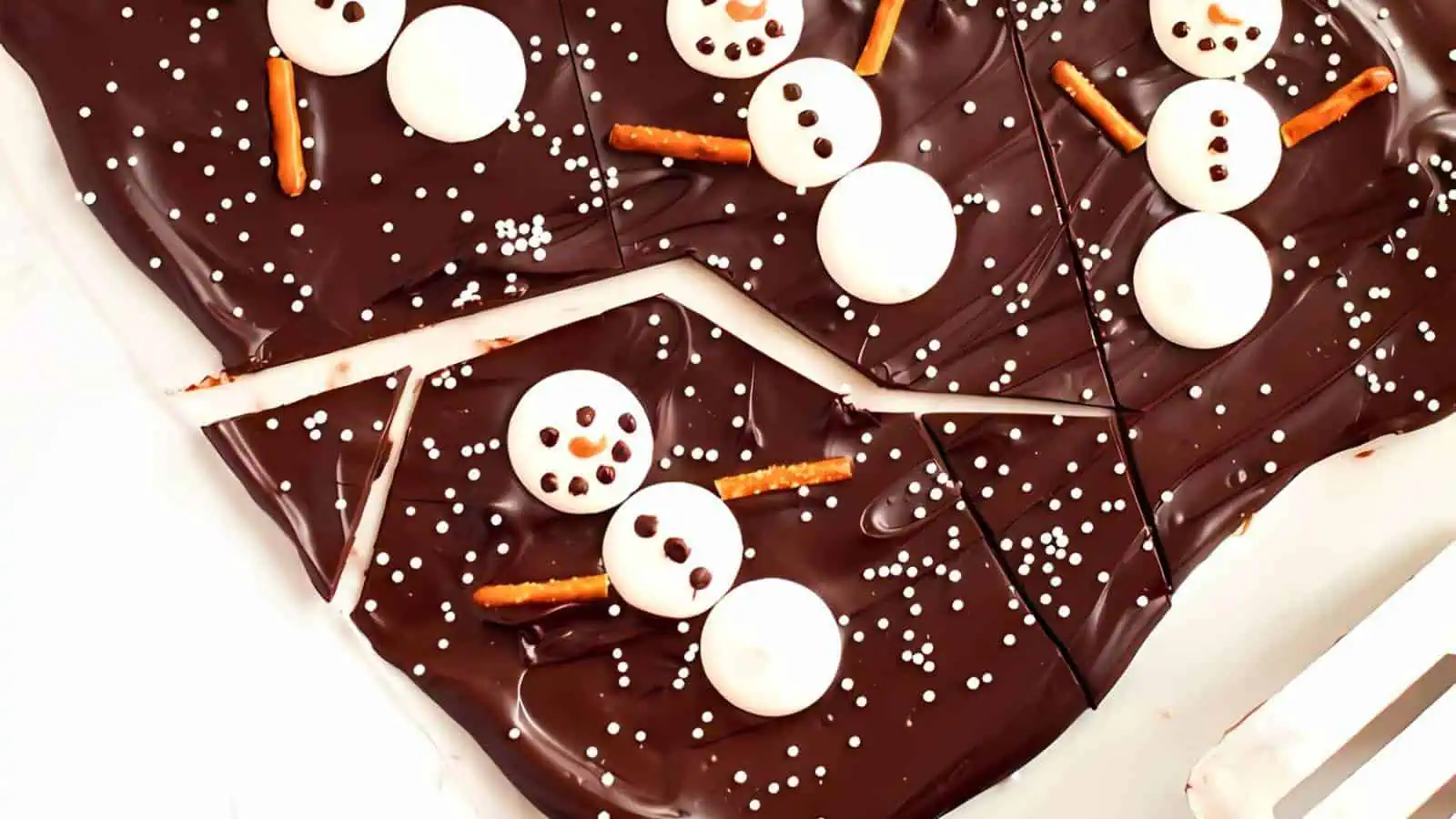 This snowman bark is a crowd-pleaser made with pantry staples in less than an hour! The playful snowman decorations make these cute and easy Christmas treats perfect for gifting or party platters. Plus, theyโre a blast to decorate with family and friends.