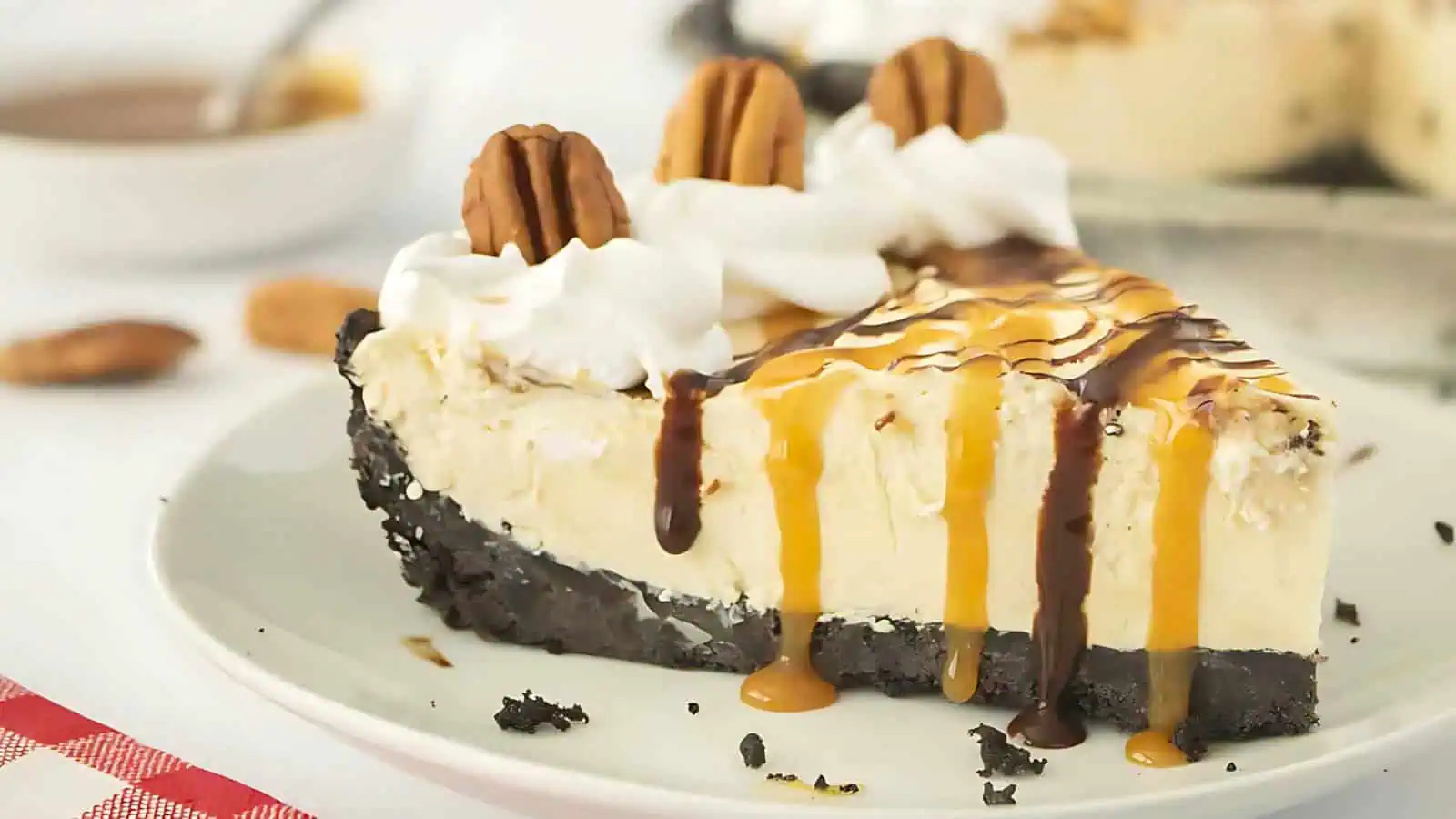 Turtle Pie is a decadent no-bake dessert filled with chocolate, caramel, and nuts, all set on a crunchy Oreo crust. It tastes just like the classic turtle candy, but in pie form, making it a perfect addition to your collection of pie recipes. Its creamy texture and rich flavors will be a hit for any occasion, especially holiday gatherings.