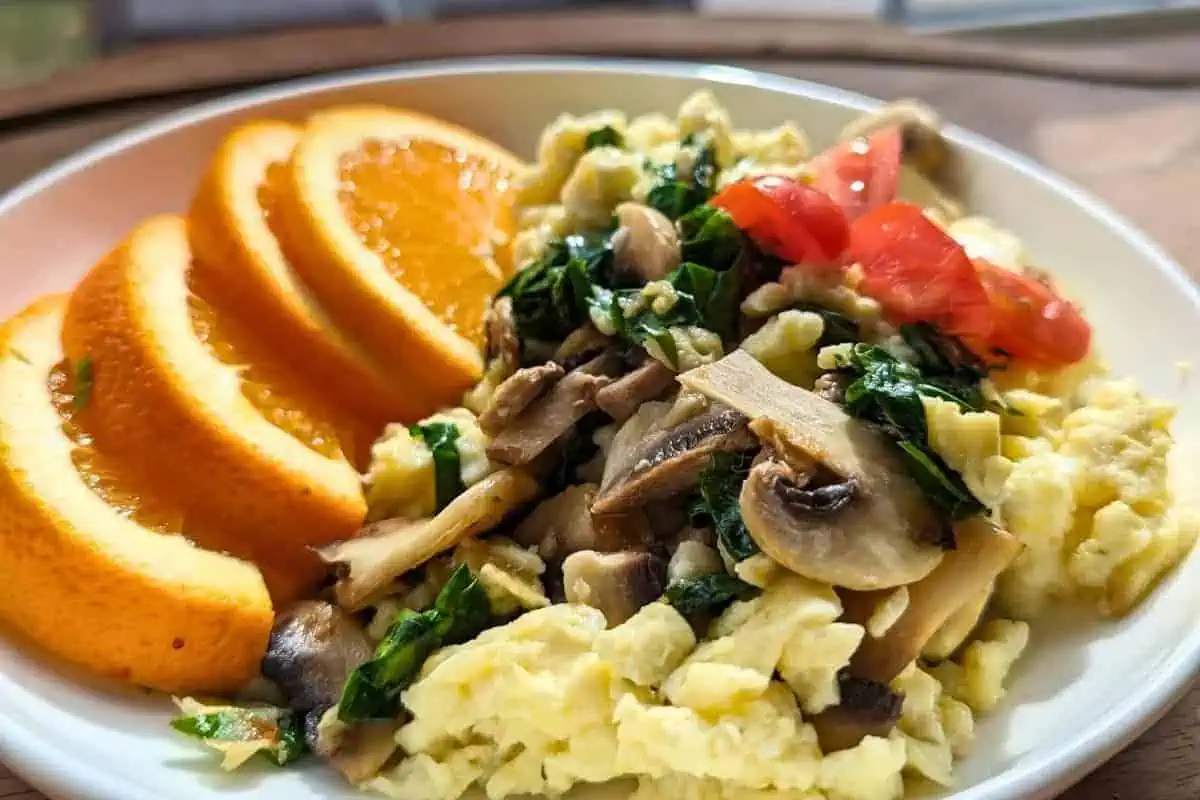 For a low-calorie, high-protein breakfast, try Cottage Cheese Eggs from Health Beet. This high-volume meal includes egg whites, an egg, veggies, and fat-free cottage cheese, making it both nutritious and satisfying.