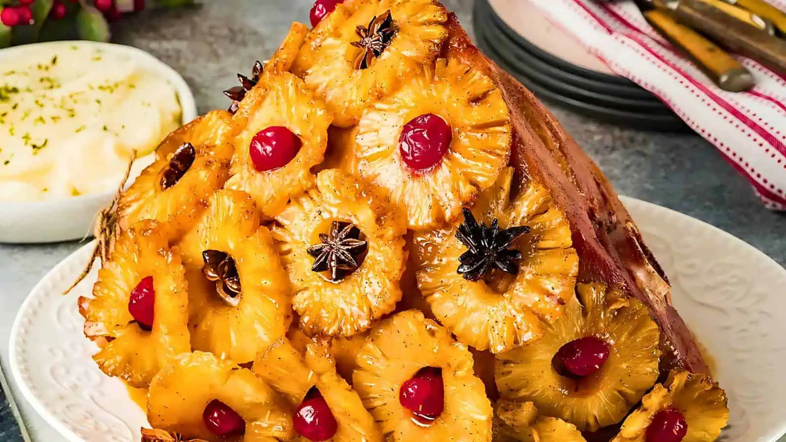 This ham brings a sweet and tangy twist to Easter dinner recipes. The pineapple glaze caramelizes beautifully, while the cherries add a festive touch, making it a standout dish for any holiday table.