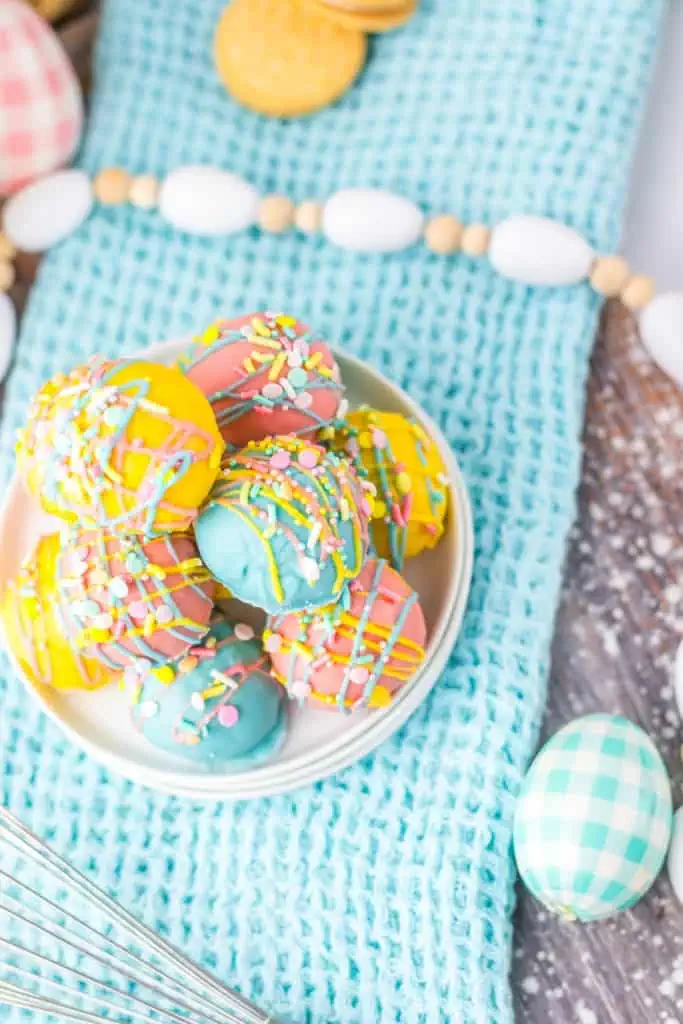 - These eye-catching Easter Oreo truffles are so pretty and cute. They're bite-sized treats for your Easter holiday celebrations, providing fun table decoration too!