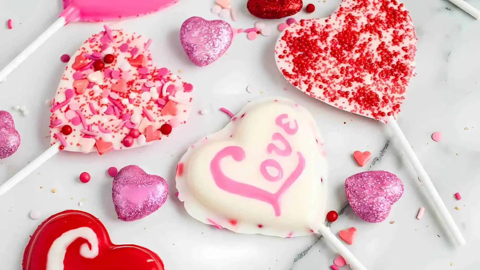 Chocolate Valentine lollipops shaped like hearts are a fun, customizable treat. Theyโre easy to whip up and make a great addition to easy chocolate Valentines recipes without the need for baking. Personalize with your favorite toppings!