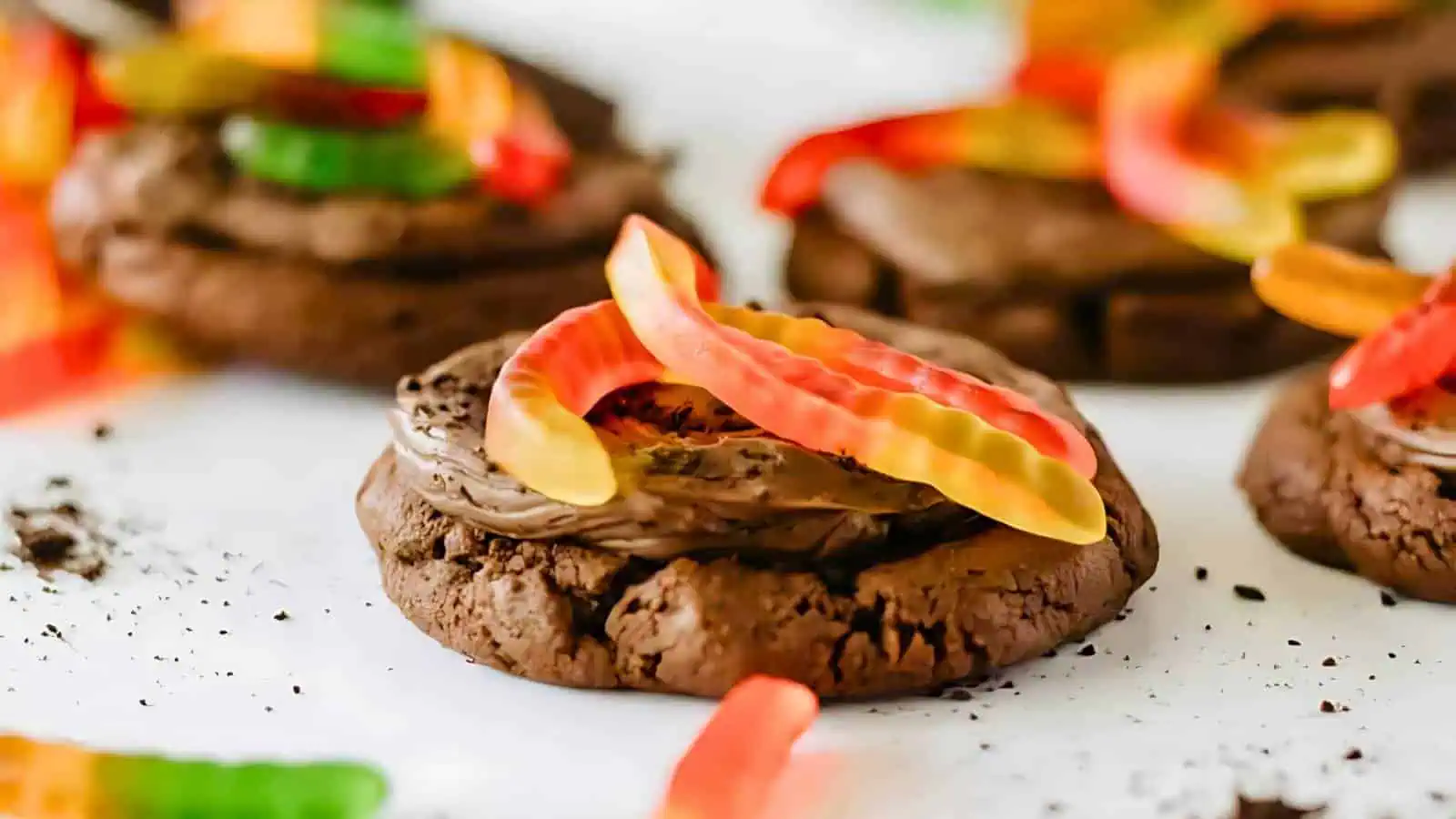 Copycat Crumble Dirt Cake Cookies are a fun and easy addition to your collection of easy Oreo Halloween recipes. Topped with crumbled Oreos and gummy worms, these soft chocolate cookies are a hit with kids and adults alike. Theyโre perfect for a Halloween party or just a spooky snack!