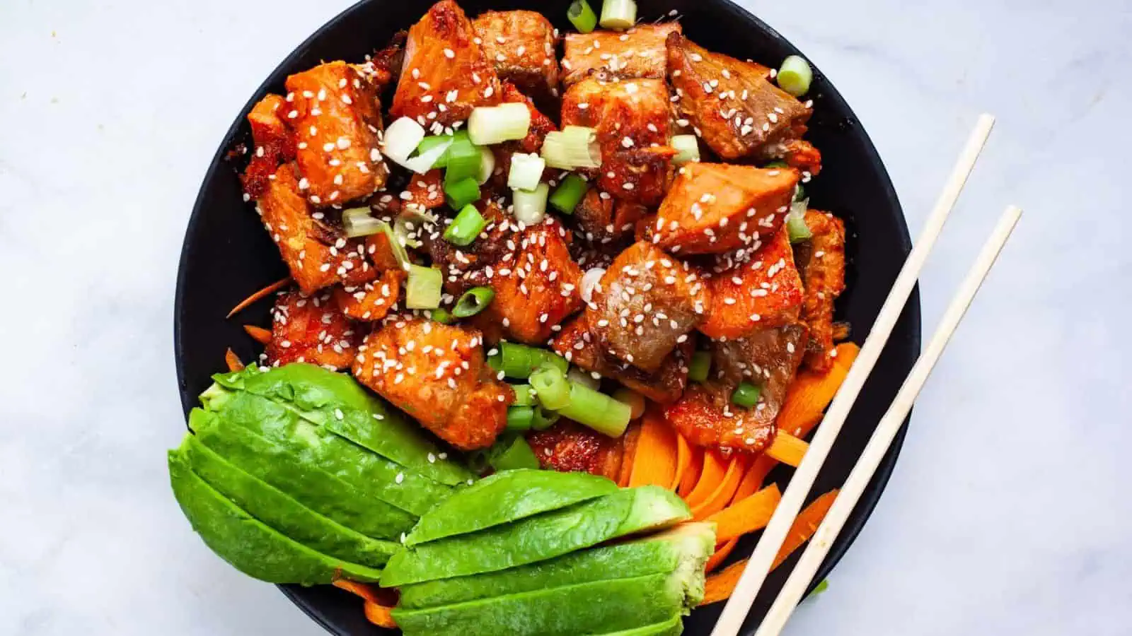 Fresh salmon, crisp veggies, and a savory-sweet marinade come together in this bowl of spring-approved goodness. It’s colorful, packed with protein, and way easier to make than it looks. Bonus points if you top it with extra avocado.
