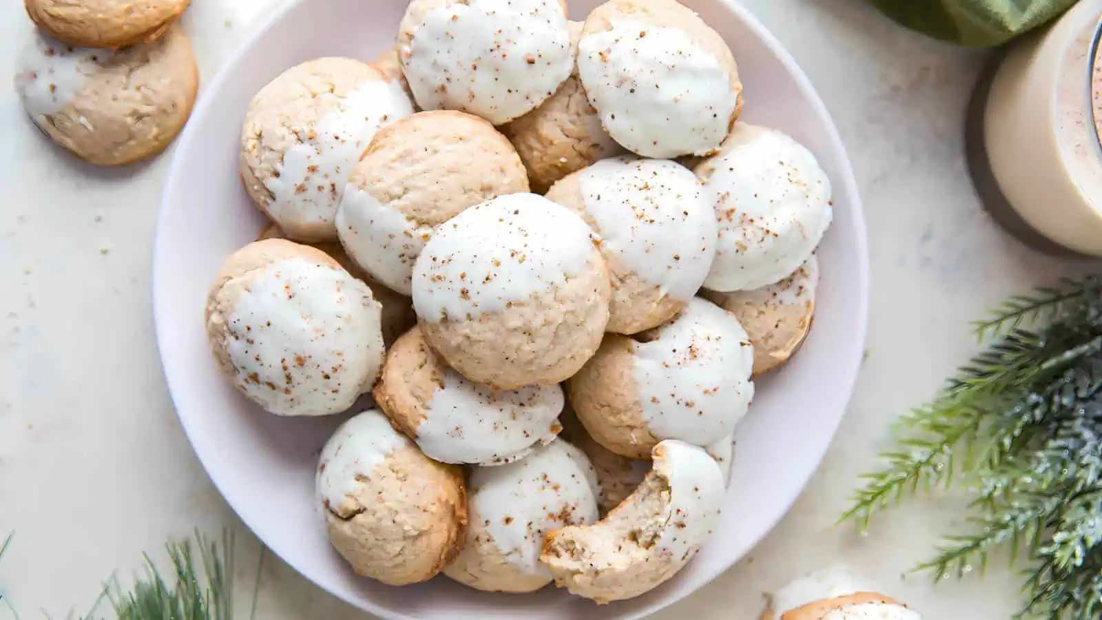 White Chocolate Dipped Eggnog Cookies