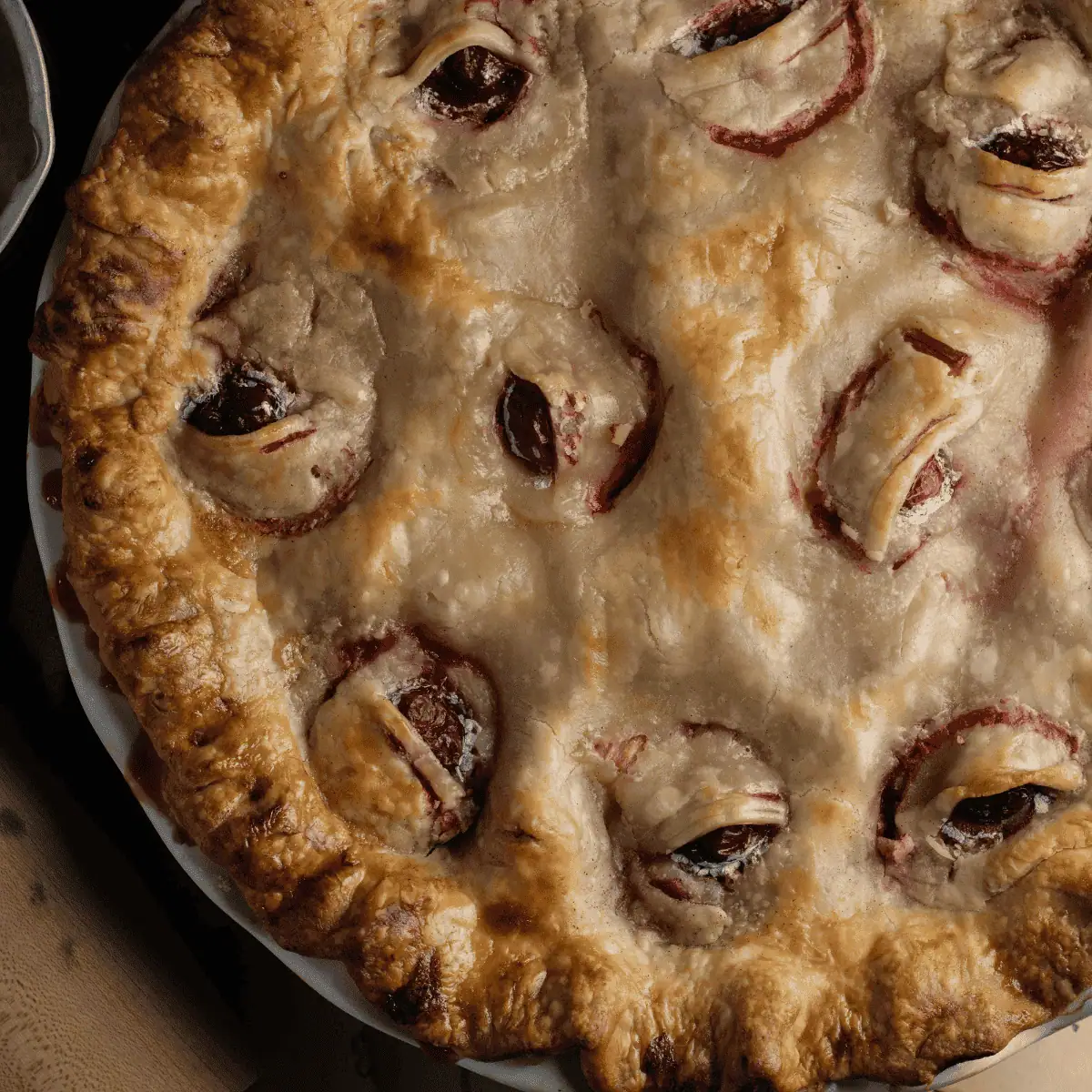 Eyeball Pie turns a classic cherry rhubarb dessert pie into a spooky holiday pie that will instantly give you the chills! The sweet and tangy pie is decorated with cherries as eyeballs and additional pie pastry, creatively shaped into eyelids!