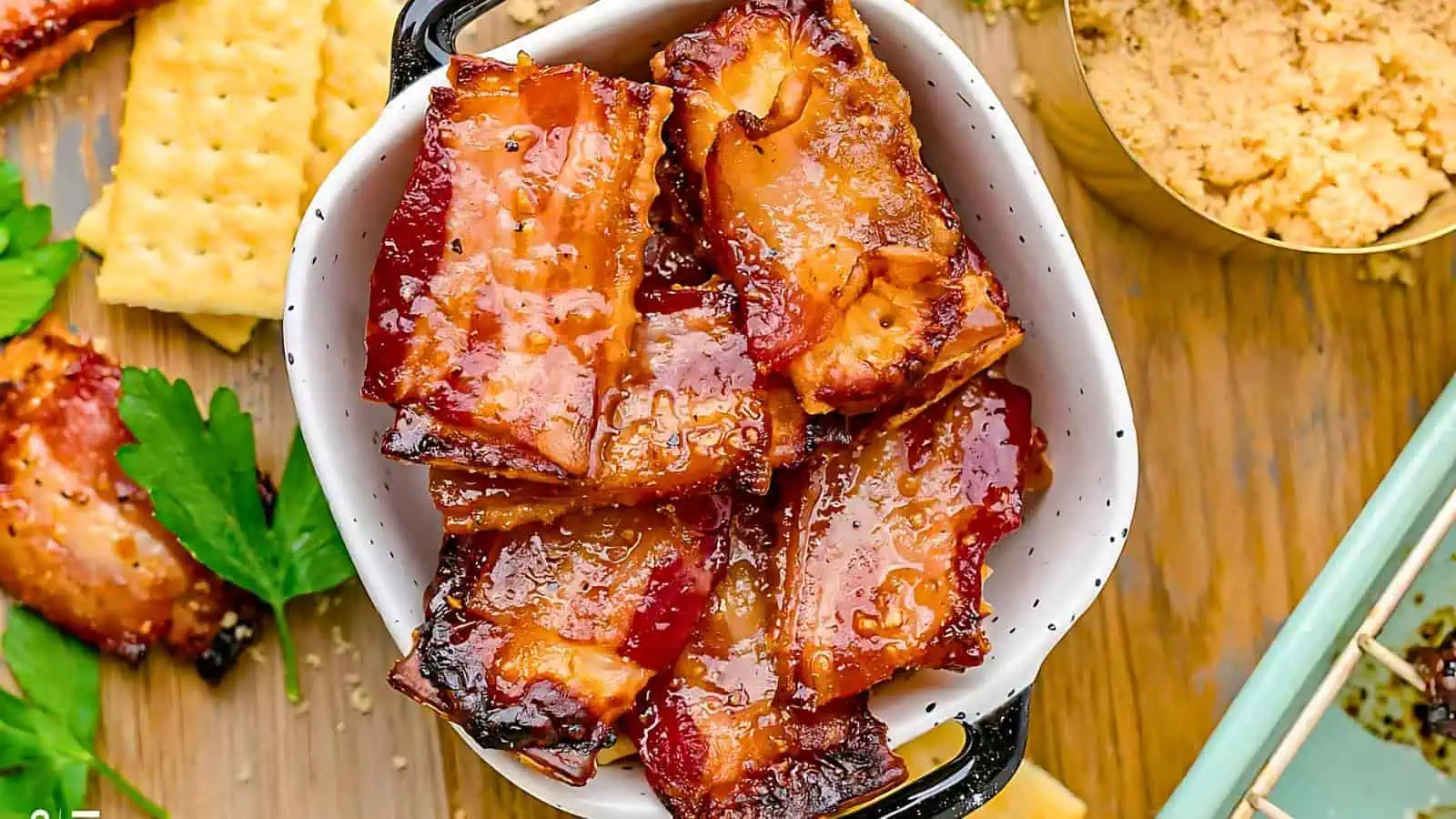 Candied bacon crackers offer a sweet and salty combination thatโs perfect for finger foods for football games. Buttery crackers topped with crispy bacon and a sugar glaze make these addictive bites hard to resist.