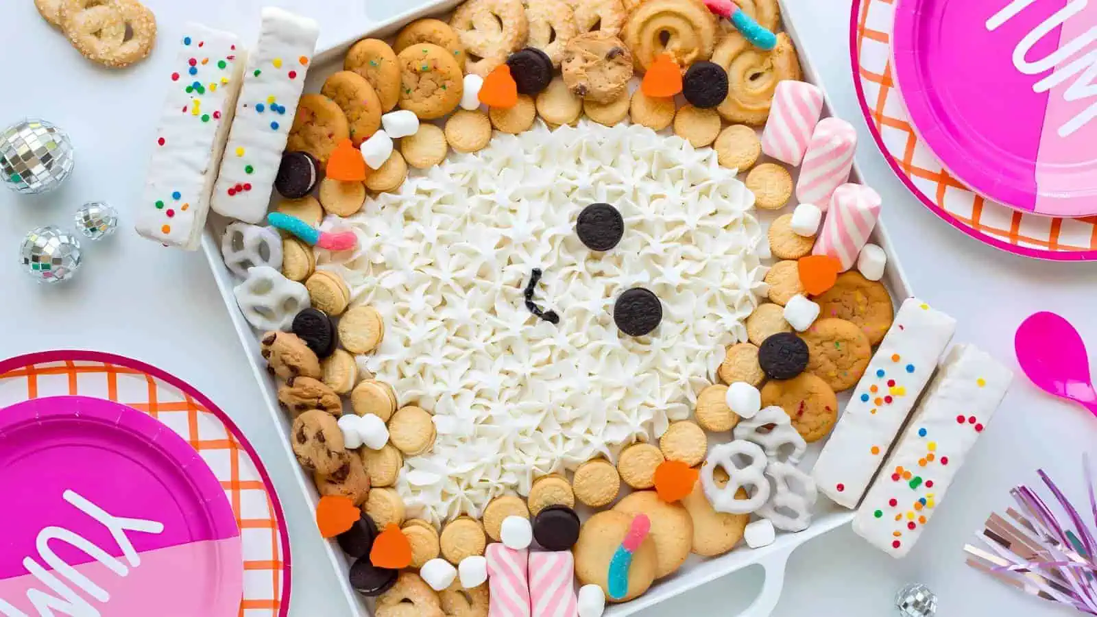 The Ghost BOOtercream Board is a fun way to make your ghost theme desserts interactive. With a mix of frosted cupcakes, cookies, and marshmallow ghosts, itโ€™s a spooky centerpiece for any Halloween party. Itโ€™s a creative and delicious way to celebrate the season.
