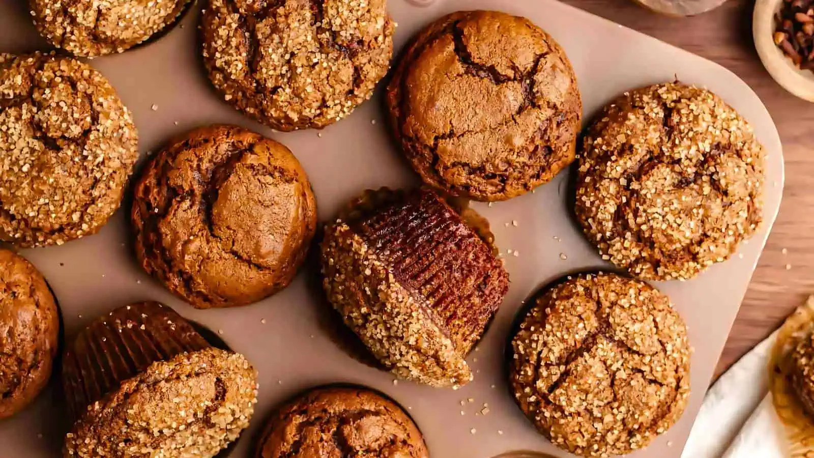 Soft and fluffy, these Spiced Molasses Gingerbread Muffins are a great option for gingerbread Christmas recipes. Topped with coarse sugar for a sweet crunch, they make an ideal breakfast or snack during the holiday season. Plus, the warm spices will fill your kitchen with a comforting aroma thatโ€™s hard to resist!
