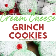 These cream cheese cookies are a classic holiday cookie recipe, inspired by a fictional character called the “Grinch” that Dr. Seuss created.