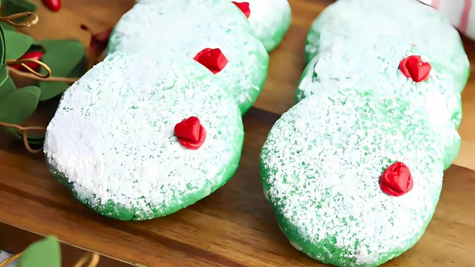 These Grinch cookies are bright green, soft, and full of holiday cheer. Finished with powdered sugar and a red heart, they’re perfect for Grinch-inspired desserts and sure to put smiles on everyone’s faces. Easy to bake and even easier to love!